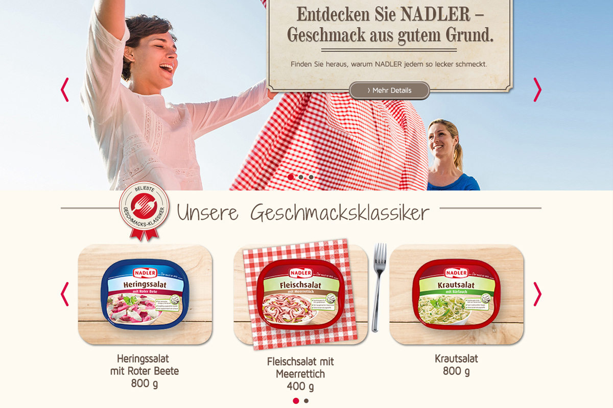 Für die Firma Nadler habe ich den Relaunch der Website vom Layout bis zum Styleguide betreut und habe die konzeptionelle und gestalterische Umsetzung von Gewinnspielen erarbeitet.