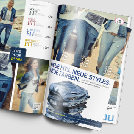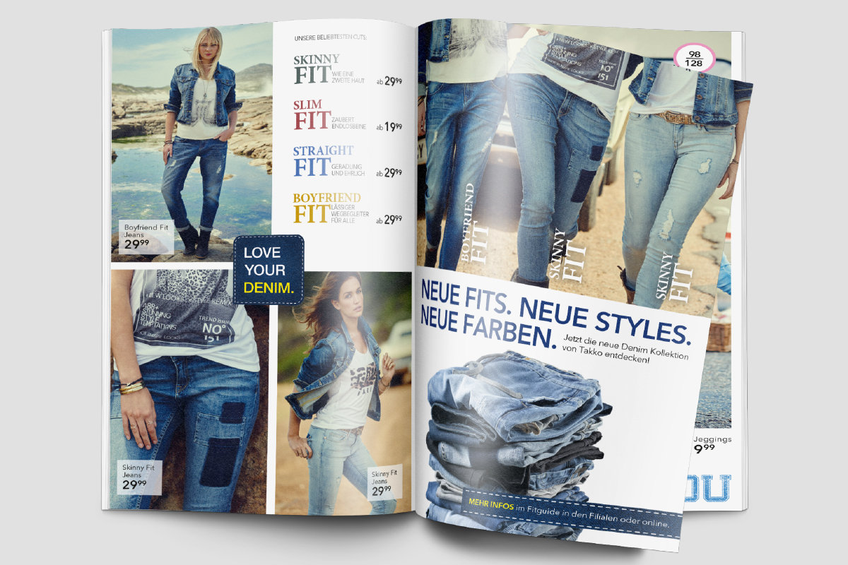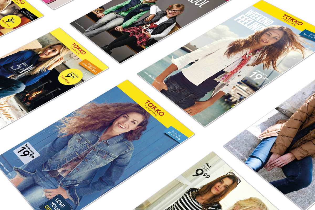Für die Firma Takko habe ich Kataloge von der Gestaltung bis zur Produktion betreut, als auch Online-Banner erstellt. Desweiteren war ich für Shootingvorbereitungen und Bildauswahl mitverantwortlich.